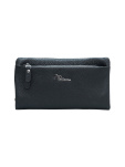 Натуральная кожа. Размер (ШхВхГ): 20,5х11х3 см. Закрывается на молнию. Внутри четыре отделения разделенных перегородками (средняя перегородка имеет карман на молнии) восемь кармашков для пластиковых карт. Снаружи карман на молнии, ручка для ношения на запястье.