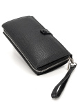 Натуральная кожа. Цвет: чёрный. Размер (ШхВхГ): 22x13x3 см. Снаружи под кнопкой два симметричных отделения, в которых, имеется по 8 кармашков для пластиковых карт и по 2 кармашка с прозрачным окошком. С обратной стороны клатча одно отделение, которое закрывается на "молнию" . Внутри два отделения для купюр разделенных карманом-перегородкой на "молнии". Имеется кожаная ручка для ношения на запястье.