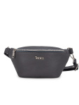 Поясная сумка из искусственной кожи. Размеры: (ВхШхГ) 32х15х6 см. Фурнитура серебряного цвета. Внутри одно отделение с подкладкой из полиэстера и накладной карман из искусственной кожи в цвет сумки. Регулируемый ремень с застежкой на карабин. Минимальная длина ремня 47 см, максимальная - 87 см.
